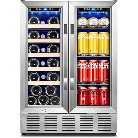 Amazon Com Wine And Beverage Refrigerator Velieta 24 Inch Dual Zone Fridge With Glass Door Built In Cooler With Powerful And Quite Cool System 18 Bottles And 88 Cans Capacity Stainless Steel Silver Kmyl120 Appliances